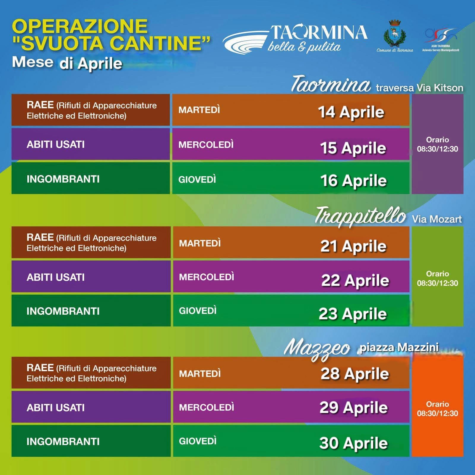 Pubblichiamo il calendario mensile delle date di Marzo 2026 a Taormina, Trappitello e Mazzeo per differenziare R.A.E.E., abiti usati, beni durevoli e ingombranti.