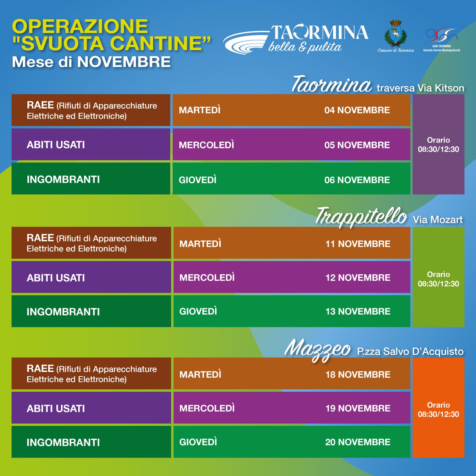Pubblichiamo il calendario mensile delle date di Novembre per differenziare R.A.E.E., abiti usati, beni durevoli e ingombranti.